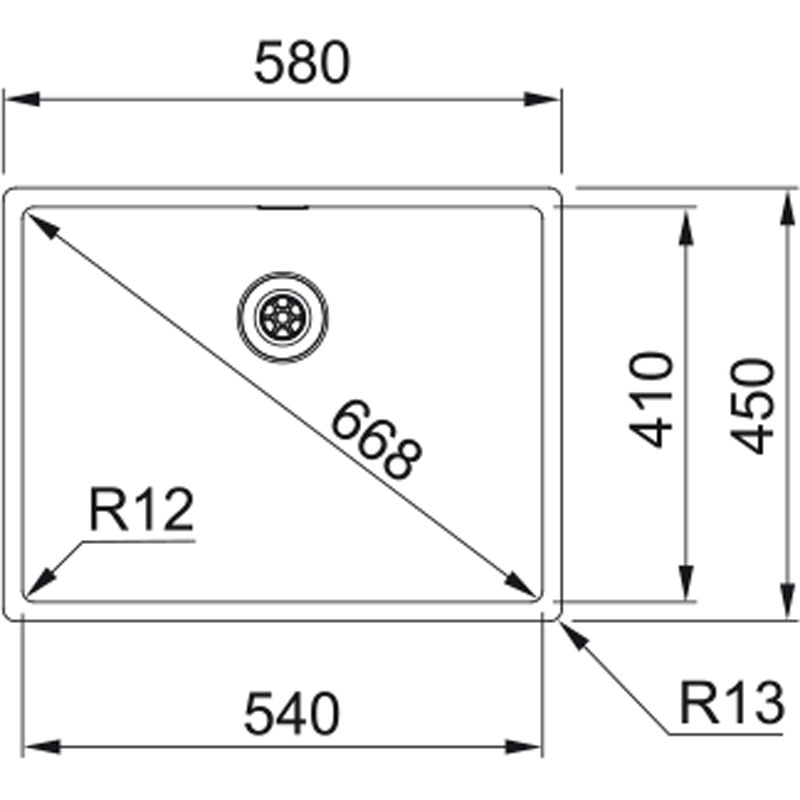 Ανοξείδωτος Νεροχύτης SQUARE BXX 210-54 580x450mm Inox Flushmount/Ένθετη/Υποκαθήμενη τοποθέτηση Σετ , βάση για ντουλάπι 60cm , 30 χρόνια εγγύηση