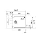 Γρανιτένιος νεροχύτης Urban UBG 611-78XL 780x500mm, ένθετος, αντιστρεφόμενος, oyster, με αυτόματη βαλβίδα, ελάχιστο μέγεθος ντουλαπιού 60cm