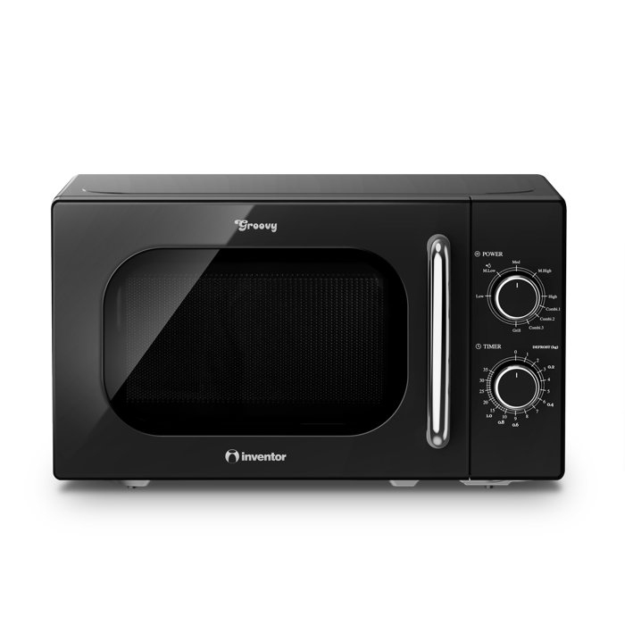 Ελεύθερος φούρνος μικροκυμάτων με grill, χωρητικότητας 20 λίτρων, ισχύος 700W, σε retro σχεδιασμό της σειράς Groovy με 3ετής εγγύηση από την Inventor.
