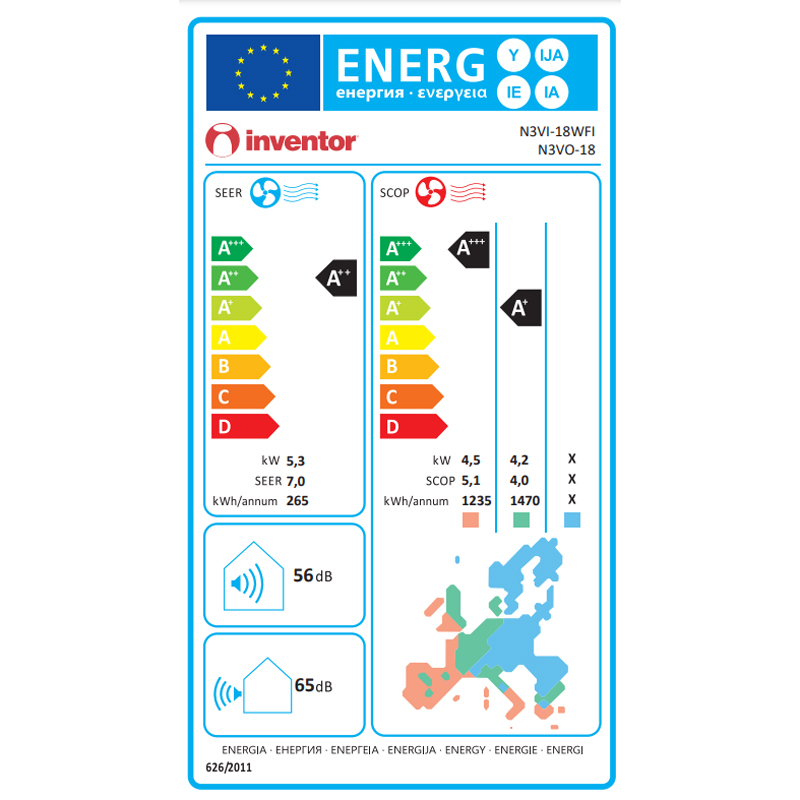 Τα κλιματιστικά Inventor είναι πιστοποιημένα από τον οργανισμό EUROVENT, για την ακρίβεια της υψηλής απόδοσής τους. Η πιστοποίηση αυτή εξασφαλίζει την ακρίβεια των τεχνικών χαρακτηριστικών όπως η ενεργειακή κλάση, η κατανάλωση ενέργειας και η στάθμη θορύβου.