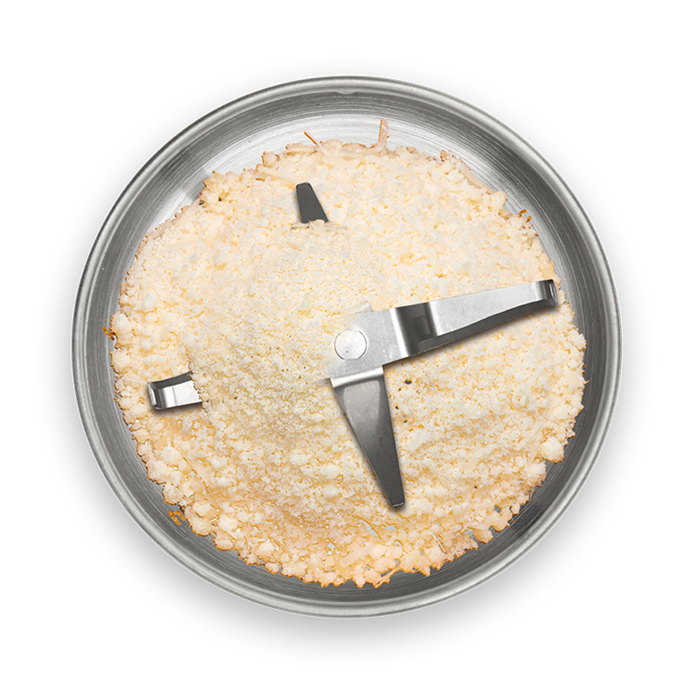 Περιλαμβάνει ανοξείδωτο δοχείο άλεσης για ξηρούς καρπούς, τυριά, σπόρους και μπαχαρικά (4 λεπίδες)