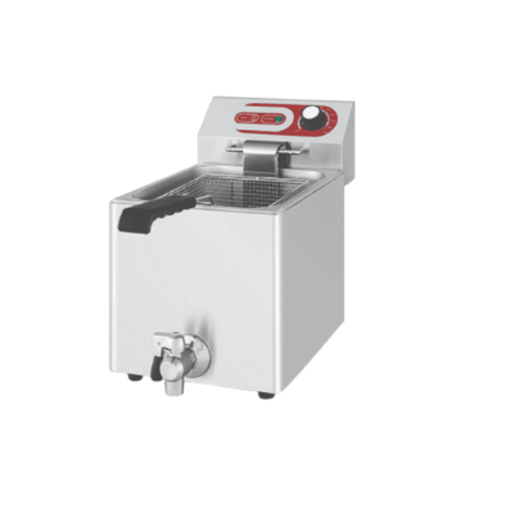 Ανοξείδωτη, επιτραπέζια. Με διακόπτη ON/OFF. Ανοξείδωτο καλάθι με λαβή. Φέρει βρύση για την αφαίρεση του λαδιού. Με θερμοστάτη 60⁰C to 190⁰C και ενδεικτική λυχνία.