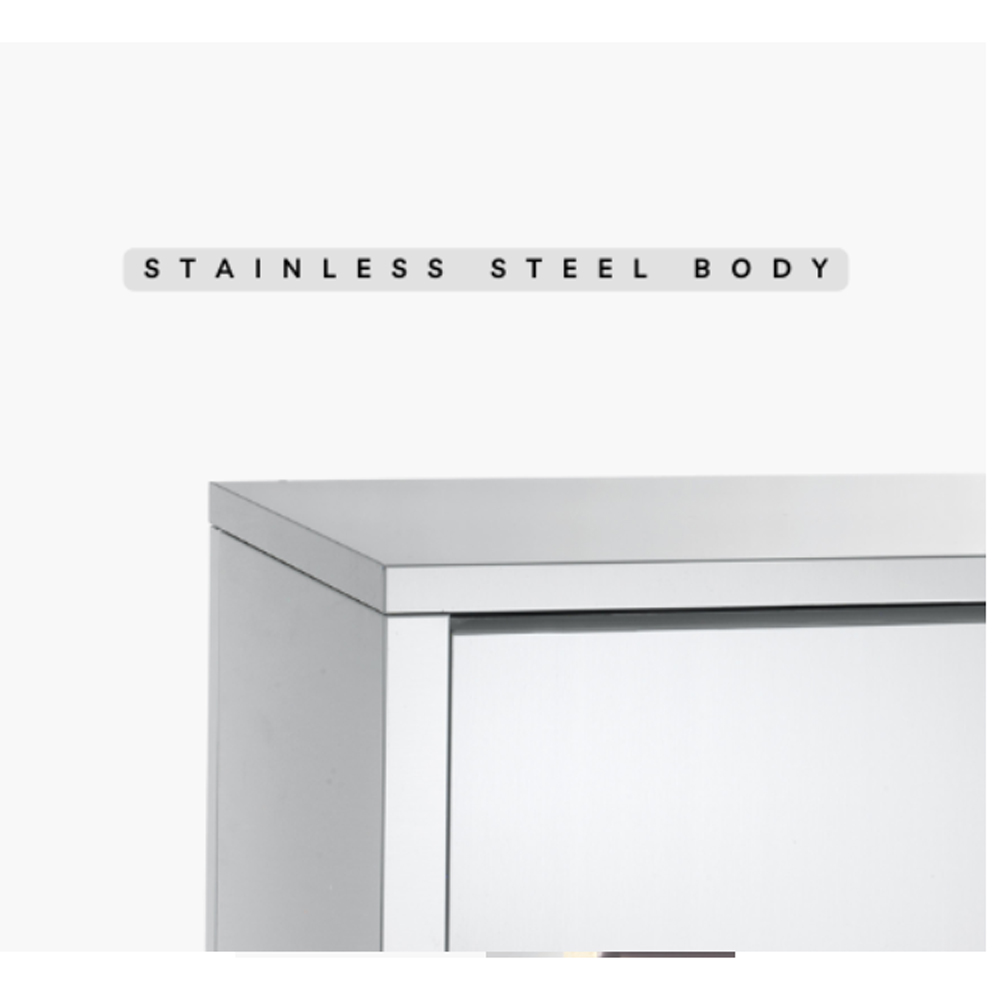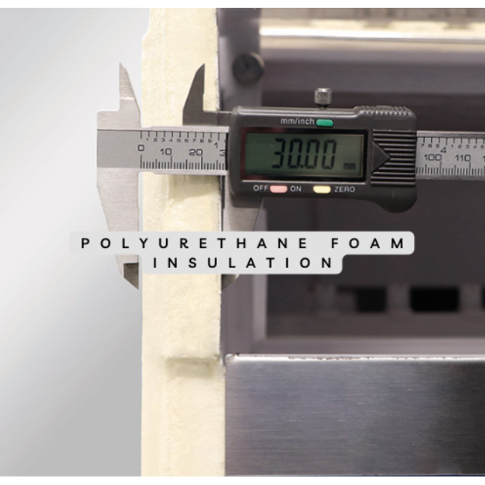Σειρά SP. Εύκολη στην επισκευή. Ηλεκτρομηχανολογική ρύθμιση. Ο Θερμοστάτης του εξατμιστή είναι στο μπροστινό μέρος της μηχανής. Μόνωση πολυουρεθάνης (HCFC Free). Μέγιστη εξωτερική θερμοκρασία 43°C. Freon R452A. Παροχή 3/4”. Αποχέτευση Ø 500mm. Με ενσωματωμένη αποθήκη.