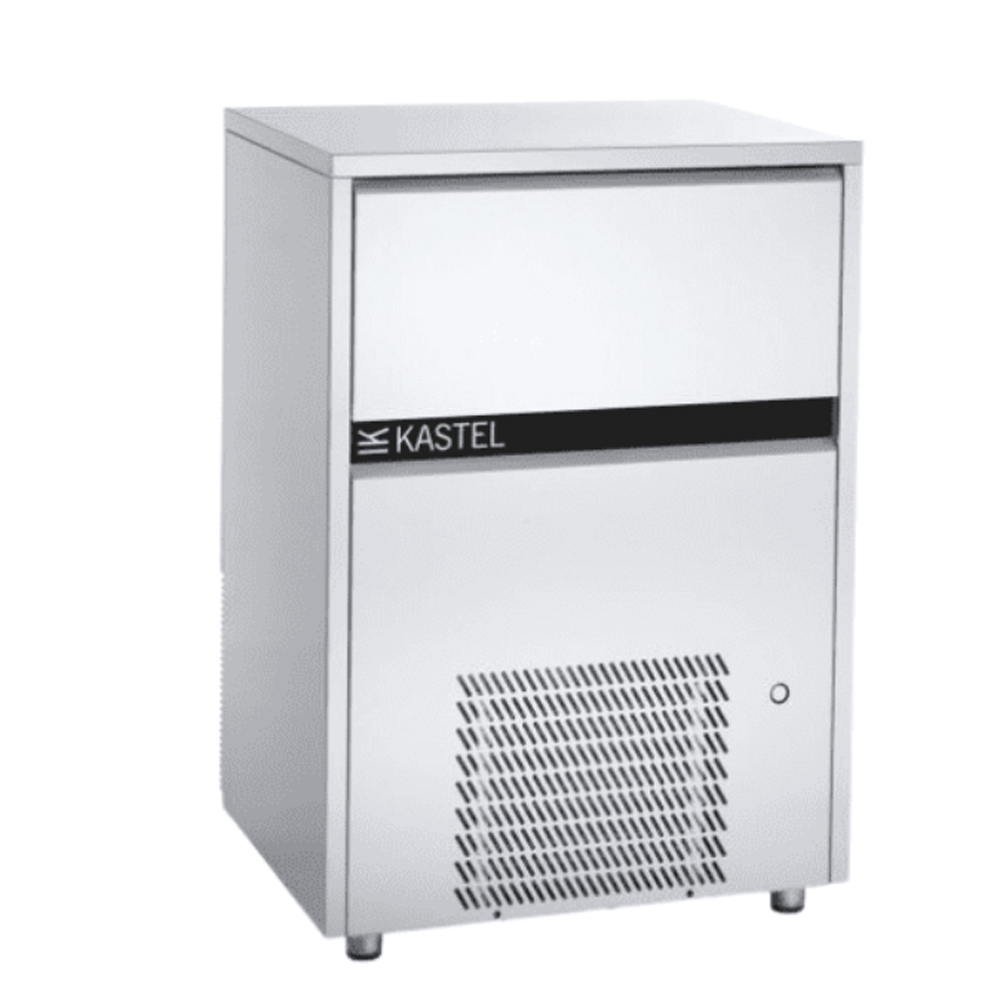 Μηχανή παγοκύβων KASTEL. Κατασκευαστής ARISTARCO Ιταλίας. Επιδαπέδια ανοξείδωτη, ψεκασμού. Παγάκι συμπαγές 36 γραμμαρίων και διαστάσεων 45*42mm.