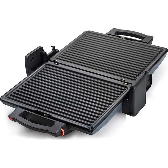 Ειδικά χαρακτηριστικά Αποσπώμενες αντικολλητικές πλάκες γκριλ, 3 θέσεις ψησίματος (δυνατότητα ανοίγματος πάνω πλάκας 90⁰ & 180 ⁰)