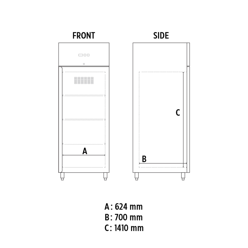 Εσωτερικές διαστάσεις 624x700x1410(h)mm