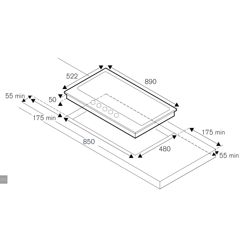 Διαστάσεις κοπής πάγκου (ΠxΒ) 850 x 480 χιλ.