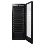 Low-e-glass: Η γυάλινη πόρτα εμφανίζει με ασφάλεια τα κρασιά σας. Το γυάλινο φίλτρο low-E προστατεύει τα μπουκάλια από τις ακτίνες UV και μειώνει την ανταλλαγή κρύου και θερμότητας μεταξύ του εσωτερικού του θαλάμου και του εξωτερικού περιβάλλοντος για να επιτύχει πραγματική εξοικονόμηση ενέργειας.