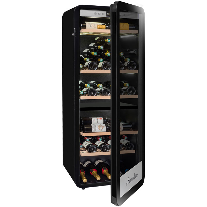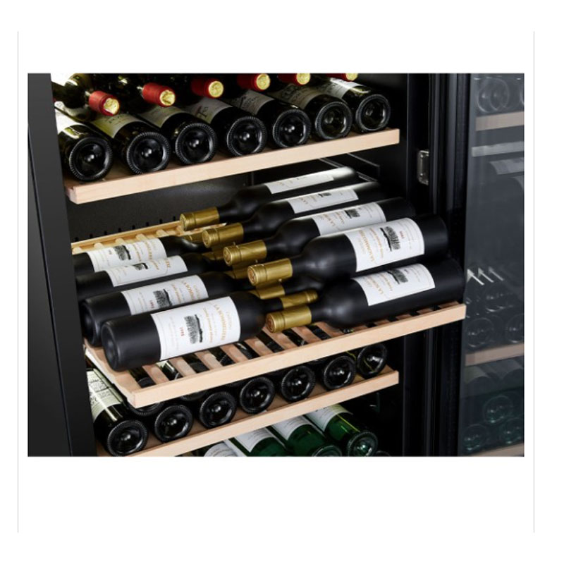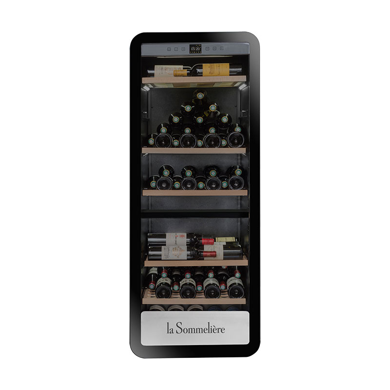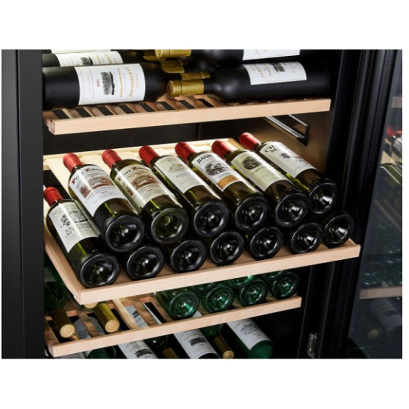 Φωτίστε τα μπουκάλια σας με το ενσωματωμένο σύστημα φωτισμού κάτω από τα ράφια. Αυτό το σύστημα σας επιτρέπει να φωτίσετε ολόκληρο το κελάρι κρασιών σας. Αποθηκεύστε έως και 181 φιάλες στα 5 ξύλινα ράφια του, αφαιρούμενα και πολλαπλών μορφών, είναι ειδικά σχεδιασμένα για να φιλοξενούν διάφορους τύπους φιαλών (Alsatian, Burgundy, Champenoise) και προσαρμόζονται στις ανάγκες σας (3 ράφια head to head position + 2 ράφια οριζόντια θέση).