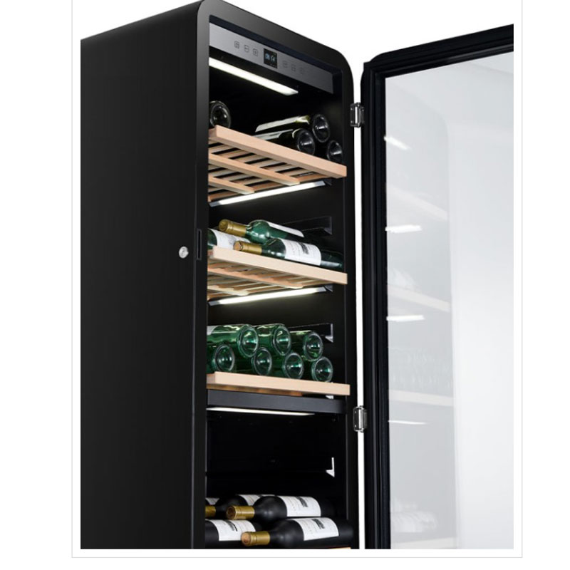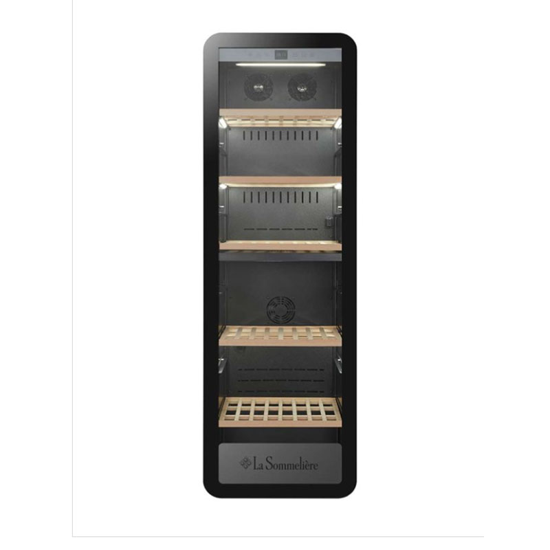 Low-e-glass: Η γυάλινη πόρτα εμφανίζει με ασφάλεια τα κρασιά σας. Το γυάλινο φίλτρο low-E προστατεύει τα μπουκάλια από τις ακτίνες UV και μειώνει την ανταλλαγή κρύου και θερμότητας μεταξύ του εσωτερικού του θαλάμου και του εξωτερικού περιβάλλοντος, για πραγματική εξοικονόμηση ενέργειας.