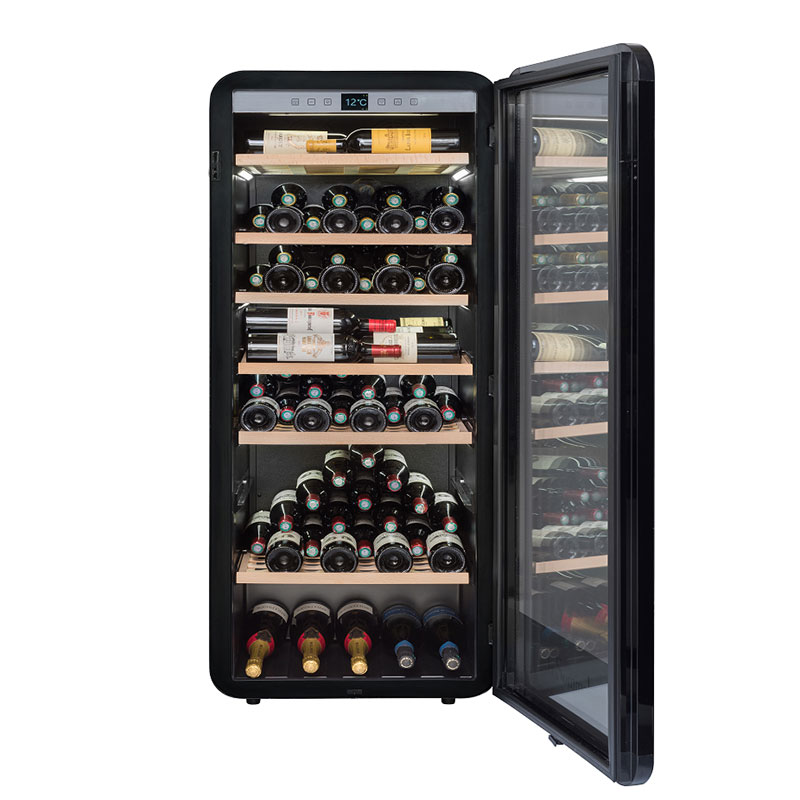 Μοντέρνο και vintage ταυτόχρονα, η APOGEE255PV κάβα κρασιών σπάει το καλούπι συνδυάζοντας τα καλύτερα χαρακτηριστικά και των δύο τάσεων. Το στρογγυλεμένο σχήμα του θυμίζει το σύμπαν του vintage και του ρετρό, μια πραγματική τρέχουσα τάση, και συνδυάζεται τέλεια με τους σύγχρονους κώδικες για να ενισχύσει και να ξεχωρίσει την εσωτερική σας διακόσμηση.
