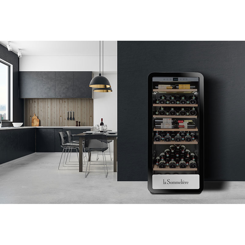 Φωτίστε τα μπουκάλια σας με το ενσωματωμένο σύστημα φωτισμού κάτω από τα ράφια. Αυτό το σύστημα φωτίζει ολόκληρο το κελάρι κρασιών. Αποθηκεύστε έως και 185 φιάλες στα 6 αφαιρούμενα και πολλαπλών σχημάτων ξύλινα ράφια της, ειδικά σχεδιασμένα για να φιλοξενήσουν διάφορους τύπους φιαλών (Αλσατία, Βουργουνδία, Σαμπάνια) και να προσαρμοστούν στις ανάγκες σας (4 ράφια τοποθετημένα από το κεφάλι μέχρι την ουρά + 2 ράφια τοποθετημένα οριζόντια).