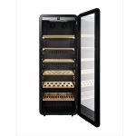 Low-e-glass: Η γυάλινη πόρτα εμφανίζει με ασφάλεια τα κρασιά σας. Το γυάλινο φίλτρο low-E προστατεύει τα μπουκάλια από τις ακτίνες UV και μειώνει την ανταλλαγή κρύου και θερμότητας μεταξύ του εσωτερικού του θαλάμου και του εξωτερικού περιβάλλοντος, για πραγματική εξοικονόμηση ενέργειας.