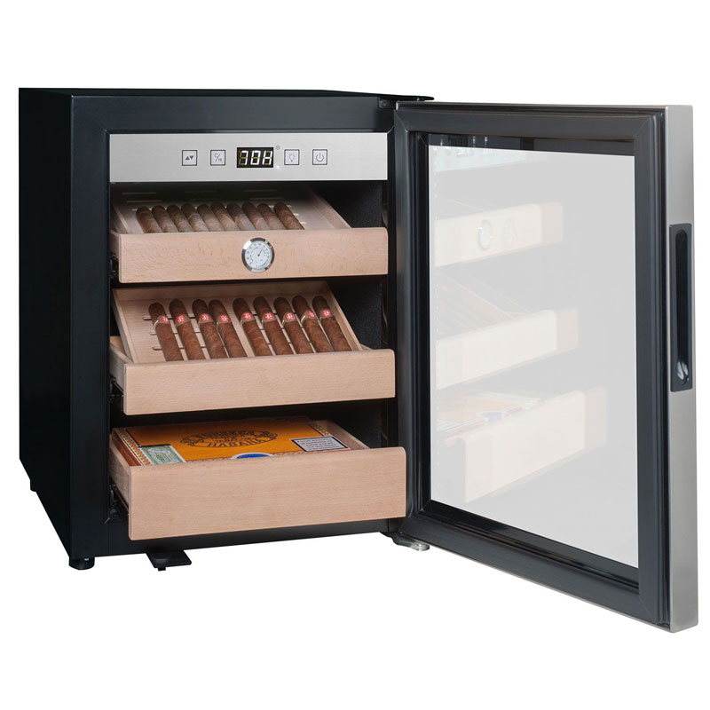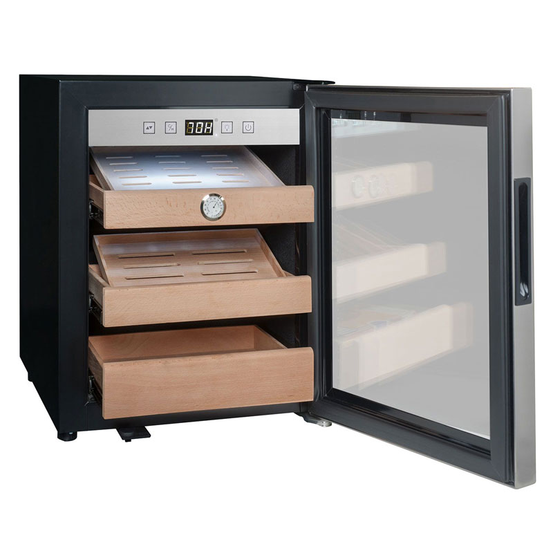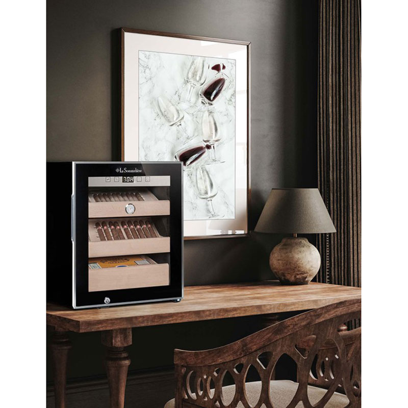 Υγραντήρας - Κάβα πούρων La Sommelière για αποθήκευση έως και 250 πούρων σε βέλτιστες συνθήκες. Για να διατηρήσεις τις ιδιότητες του καπνού και να απολαύσεις τα καλύτερα πούρα σου στην καλύτερη περίπτωση, πρέπει να τα αποθηκεύσεις σε ένα περιβάλλον που δεν είναι ούτε πολύ στεγνό ούτε πολύ υγρό. Τα συρόμενα συρτάρια παρέχουν εύκολη και άνετη πρόσβαση. Δυνατότητα αποθήκευσης πούρων μεμονωμένα ή στο κουτί τους.