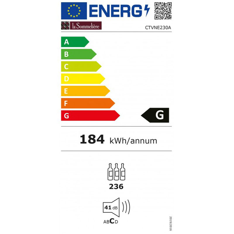 Η CTVNE230A κάβα έχει χωρητικότητα παλαίωσης 236 φιάλες κρασιού. Αυτό το all-in-black κελάρι είναι εξαιρετικά κομψό με τη μεγάλη γυάλινη πόρτα κατά της υπεριώδους ακτινοβολίας.