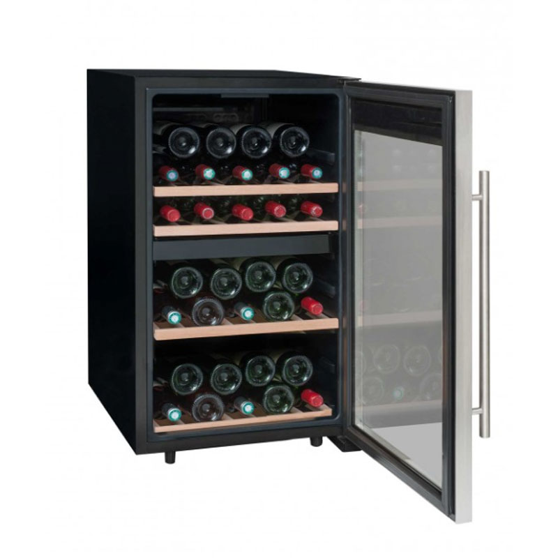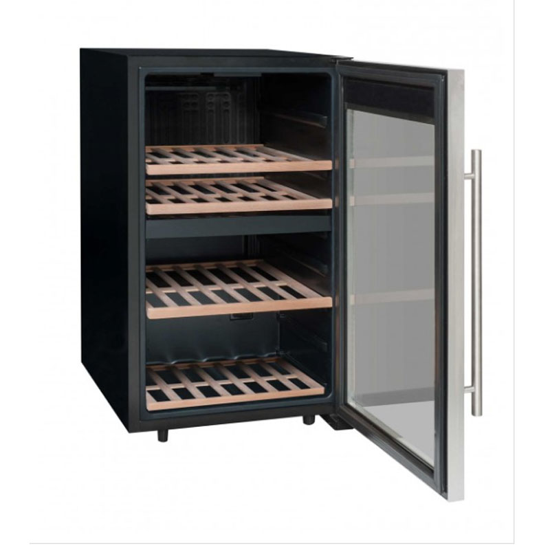 Η κάβα κρασιών LS51.2Z INOX έχει χωρητικότητα έως και 50 φιάλες*. Αυτό το ελκυστικό κελάρι διαθέτει πόρτα κατά της υπεριώδους ακτινοβολίας για να εμφανίσετε τη συλλογή κρασιών σας, ενώ τα ράφια με ξύλινη πρόσοψη που περιέχονται στο εσωτερικό (περιλαμβάνονται 3 σταθερά ράφια και 1 μισό ράφι από ξύλο οξιάς) προσφέρουν κομψή στήριξη.