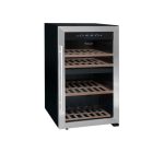 S512Z INOX κελάρι αποθήκευσης κρασιών για έως 50 φιάλες* Σε αυτό το κελάρι κρασιών διπλής ζώνης, κάθε διαμέρισμα μπορεί να ρυθμιστεί ανεξάρτητα από το άλλο. Παρέχεται με 3 σταθερά ράφια και 1 μισό ράφι από ξύλο οξιάς.