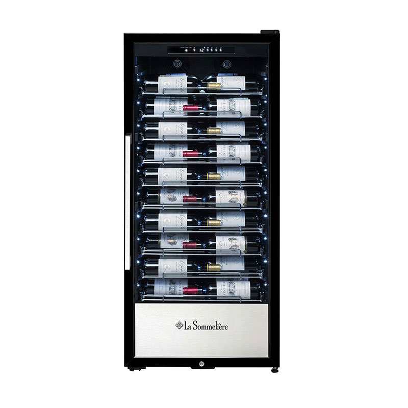 Λευκός φωτισμός LED με διακόπτη: ο ενσωματωμένος λευκός φωτισμός LED προσθέτει μια πινελιά κομψότητας στην κάβα κρασιών σας. Όχι μόνο αναδεικνύει τα πολύτιμα μπουκάλια σας, αλλά διευκολύνει επίσης την επιλογή των κρασιών σας, ακόμη και σε συνθήκες χαμηλού φωτισμού. Ο διακόπτης σάς επιτρέπει να ελέγχετε τον φωτισμό σύμφωνα με τις προτιμήσεις σας.