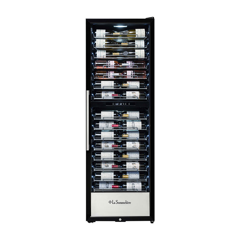 Εγγυάται χαμηλή κατανάλωση ενέργειας μόλις 180 kWh ετησίως. Με χαμηλό επίπεδο θορύβου 38 dB, ενσωματώνεται διακριτικά στον χώρο τροφοδοσίας σας. Με δύο ρυθμιζόμενες ζώνες θερμοκρασίας (5°C έως 12°C και 12°C έως 20°C), μπορεί να φιλοξενήσει όλους τους τύπους φιαλών. Προσαρμόζεται εύκολα στον επαγγελματικό σας χώρο και διαθέτει 15 συρόμενα ράφια από χαλύβδινο σύρμα για να διατηρείτε ορατές τις καλύτερες ετικέτες σας για γρήγορη αναγνώριση, καθώς και ένα ψηφιακό θερμόμετρο.