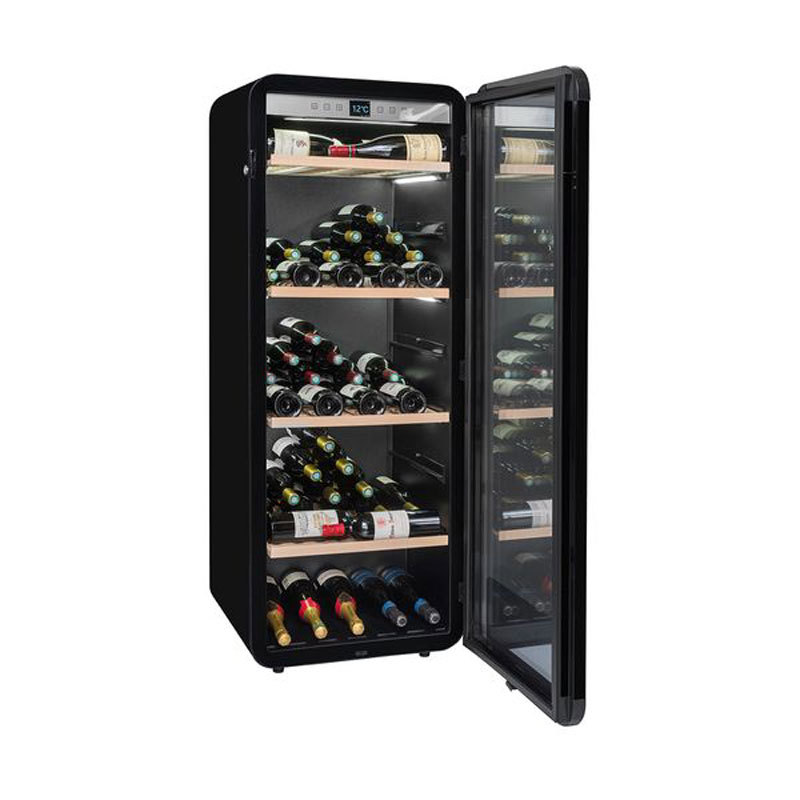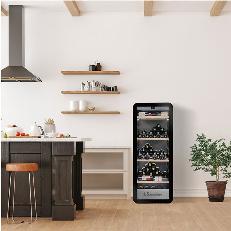 Αναδείξτε τις εκλεκτές ποικιλίες σας: Αναδείξτε τα μπουκάλια σας χάρη στο ενσωματωμένο σύστημα φωτισμού κάτω από τα ράφια. Αυτό το σύστημα σας επιτρέπει να φωτίσετε ολόκληρο το κελάρι κρασιών σας. Διατηρήστε έως και 147 φιάλες στα 4 ξύλινα ράφια του, αφαιρούμενα και πολλαπλών μορφών, είναι ειδικά σχεδιασμένα για να φιλοξενούν διάφορους τύπους φιαλών (Alsacienne, Bourgogne, Champenoise) και προσαρμόζονται στις ανάγκες σας.