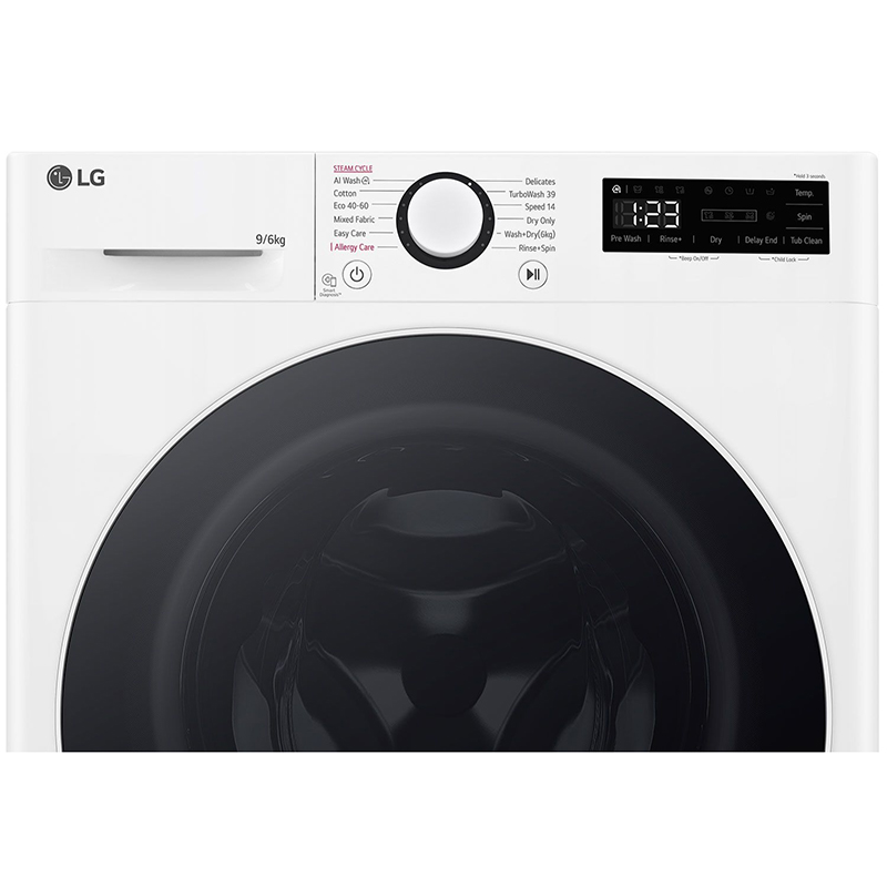 Πλυντήριο-στεγνωτήριο LG 1400 στροφών, με 9kg πλύσης και 6kg στέγνωμα. Διαθέτει ειδικό πρόγραμμα Allergy Care για την εξαφάνιση όλων των αλλεργιογόνων από τα ρούχα και τεχνολογία SmartDiagnosis, που βρίσκει εύκολα το οποιοδήποτε πρόβλημα υπάρχει στη συσκευή και σας ενημερώνει ανάλογα.