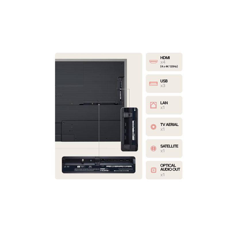 Είσοδος HDMI 4ea (υποστηρίζει 4K 120Hz, eARC, VRR, ALLM, QMS (4 θύρες))