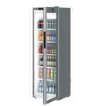 Οι πόρτες από ενισχυμένο μονό κρύσταλλο ασφαλείας είναι πολύ ανθεκτικές σε χτυπήματα. Το στενό προφίλ αλουμινίου στο πλαίσιο της πόρτας, αυξάνει την επιφάνεια παρουσίασης.