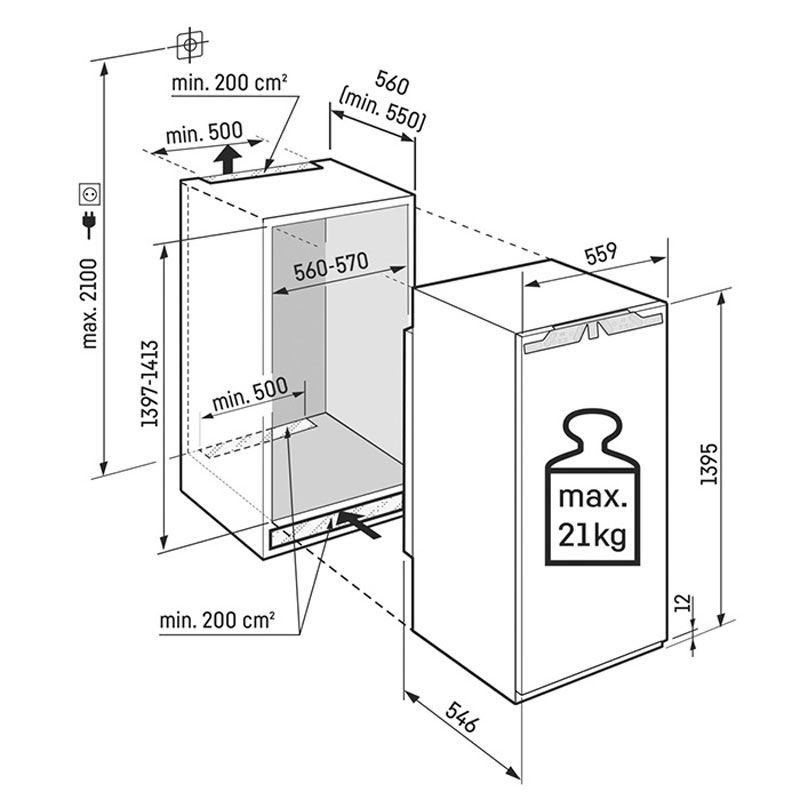 Διαστάσεις εσοχής Ύψος/Πλάτος/Βάθος 139,7 - 141,3 / 56 - 57 / 55,0 cm