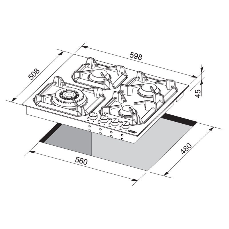 Διαστάσεις κοπής πάγκου (ΠxΒ) 560 x 480 χιλ.