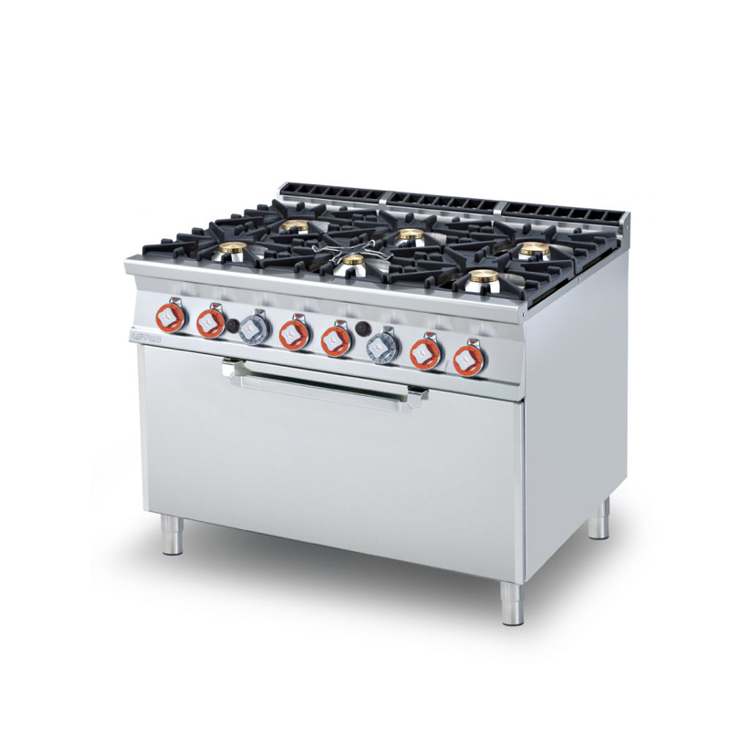 Κουζίνα αερίου 6 εστιών με φούρνο αερίου στατικό