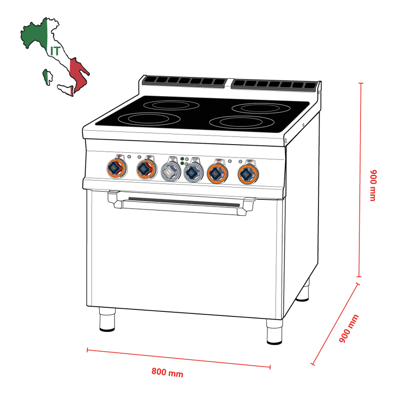 BARTCHER 1519821 ΕΠΑΓΓΕΛΜΑΤΙΚΗ ΚΟΥΖΙΝΑ 90CM ΠΛΑΤΟΣ ΜΕ 5 ΕΣΤΙΕΣ ΑΕΡΙΟΥ ΚΑΙ ΦΟΥΡΝΟ ΗΛΕΚΤΡΙΚΟ MULTIFUNCTION