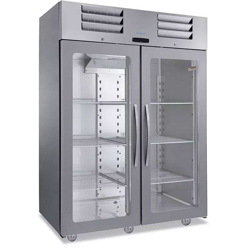 Εξοπλισμός που αναπτύχθηκε για να παρέχει στους σεφ ένα ποιοτικό και στιβαρό προϊόν σε ενδιαφέρουσα τιμή. Με εσωτερικό και εξωτερικό από ανοξείδωτο χάλυβα, μόνωση 80 mm σε πολυουρεθάνη υψηλής πυκνότητας, αεριζόμενο κρύο με σύστημα monoblock και αυτόματη απόψυξη, εγγυάται όχι μόνο ομοιομορφία θερμοκρασίας αλλά και γρήγορη ανάκτηση θερμοκρασίας μετά το άνοιγμα της πόρτας. Η γυάλινη πόρτα με εσωτερικό φως led επιτρέπει μια κομψή θέα και έκθεση του προϊόντος. Παρέχεται με 6 ράφια από πλαστικοποιημένο χάλυβα (3 ανά πόρτα) σε οδηγό διπλής λειτουργίας, επιτρέπει τη χρήση ραφιού και δοχείου GN ταυτόχρονα. Standard με 4 ρυθμιζόμενα inox πόδια, πόρτα με αυτόματη επαναφορά σε κλειστή θέση και ανυψωμένη οροφή για εύκολη πρόσβαση στα εξαρτήματα από μπροστά. Προαιρετικά, μπορεί να προστεθεί κλειδαριά πόρτας.