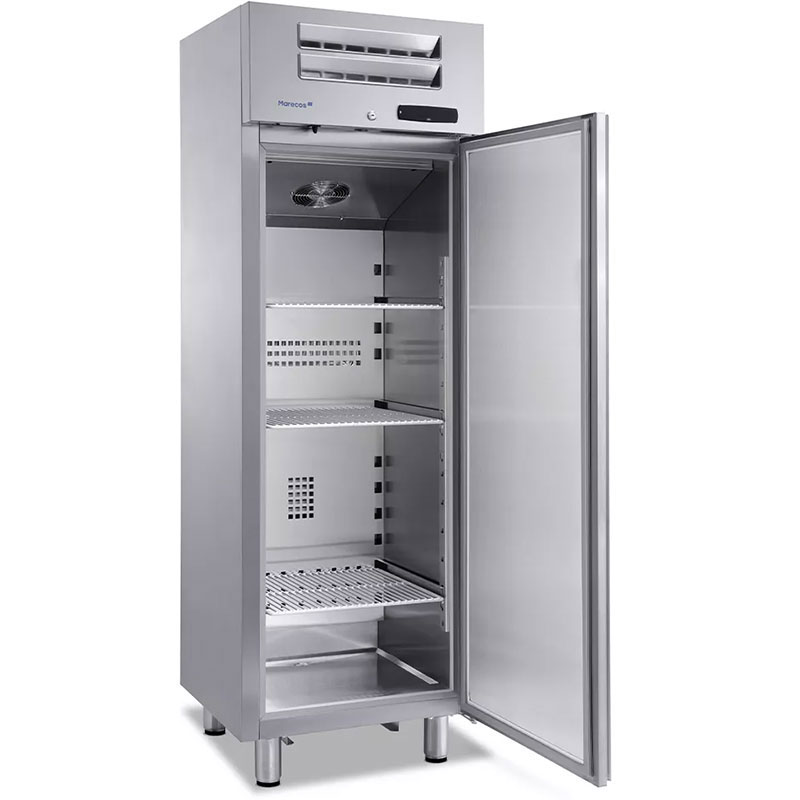 Επαγγελματικός εξοπλισμός που αναπτύχθηκε για τέλειο συνδυασμό σχεδιασμού και λειτουργικότητας. Λόγω των μικρών διαστάσεων, είναι ο ιδανικός εξοπλισμός για μικρές κουζίνες ή χώρους σνακ. Το εσωτερικό από ανοξείδωτο χάλυβα, μόνωση 60 mm και αεριζόμενο κρύο εγγυάται την ομοιομορφία της θερμοκρασίας στο εσωτερικό και γρήγορη ανάκτηση μετά το άνοιγμα της πόρτας. Το νερό από την αυτόματη απόψυξη με ζεστό αέριο πηγαίνει απευθείας σε ένα δίσκο που βρίσκεται στο κάτω μέρος της μονάδας. Standard με 3 ράφια από πλαστικοποιημένο ατσάλι, κλειδαριά πόρτας, αναστρέψιμη πόρτα με αυτόματη επιστροφή σε κλειστή θέση και ρυθμιζόμενα πόδια inox.