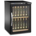 Εξοπλισμένο με κλειδαριά, φως LED, 2 αφαιρούμενα ράφια σε ξύλο, αναστρέψιμη γυάλινη πόρτα με αυτόματο κλείσιμο και 4 ροδάκια