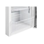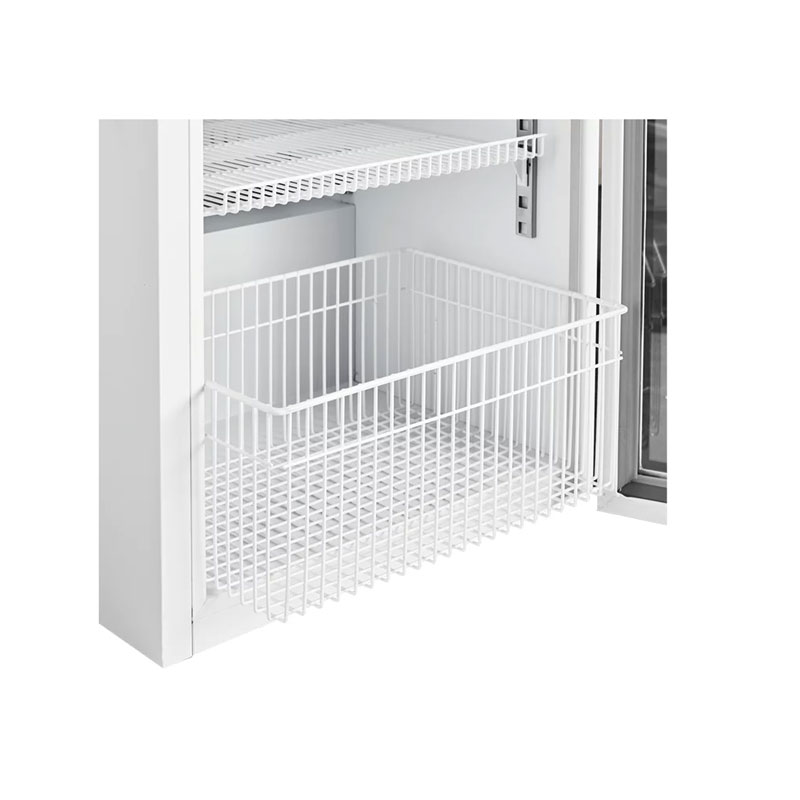 Παρέχεται με κλειδαριά για την αποφυγή μη εξουσιοδοτημένης πρόσβασης, 3 αφαιρούμενα ράφια από πλαστικό επικαλυμμένο χάλυβα για την αποφυγή διάβρωσης και καλάθι στο κάτω μέρος, διπλή σκληρυμένη γυάλινη πόρτα , αναστρέψιμη και με αυτόματη επιστροφή στην κλειστή θέση, φωτισμός led, λαβή με εργονομικό σχεδιασμό και εύκολο καθαρισμό και 4 ρυθμιζόμενα πόδια