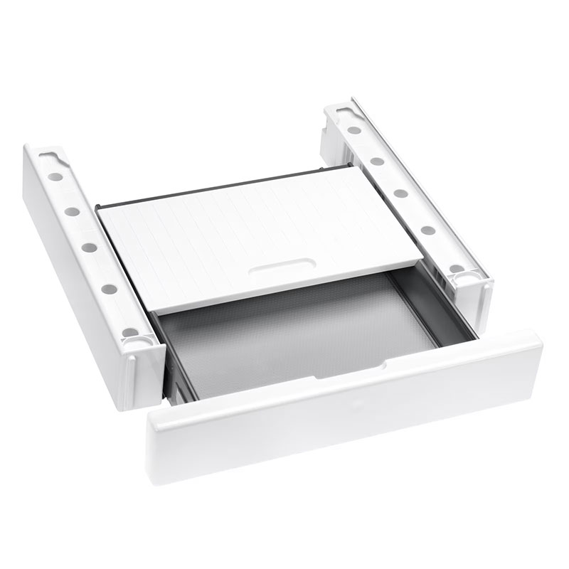 Συνδετικό κολώνας πλυντηρίου-στεγνωτηρίου με ενσωματωμένη θήκη για ιδιαίτερα άνετη τοποθέτηση κολώνας πλυντηρίου-στεγνωτηρίου.