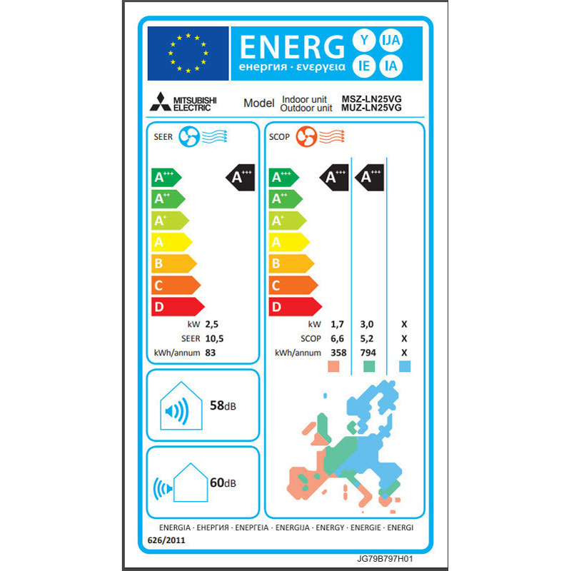 ΚΛΙΜΑΤΙΣΤΙΚΟ INVERTER 9000BTU ΧΡΩΜΑ ΛΕΥΚΟ MITSUBISHI MSZ/MUZ-LN 25 VG