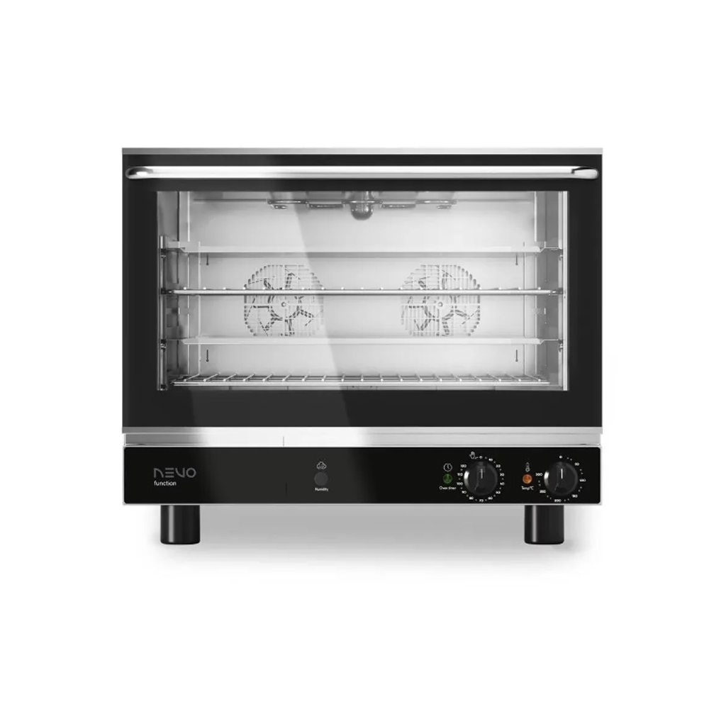 Φούρνος κυκλοθερμικός με υγρασία της σειράς Function. Με ηλεκτρομηχανικό χειρισμό και λειτουργία ψεκασμού στην θαλάμη για παραγωγή υγρασίας. Διαθέτει ανοξείδωτο βεντυλατέρ με αυτόματη αναστροφή, αφαιρούμενο λάστιχο στην πόρτα του φούρνου και διπλό τζάμι στην πόρτα. Έχει προστασία στην αποχέτευση του φούρνου και εσωτερικό φωτισμό στην θαλάμη. Υπάρχουν προαιρετικά εξαρτήματα όπου φούρνος από GN 1/1 να δεχθεί 600x400 mm λαμαρίνα. Συμπεριλαμβάνεται μία σχάρα 60x40cm. Μέγιστο ύψος λαμαρινών 70 ή 75 mm.