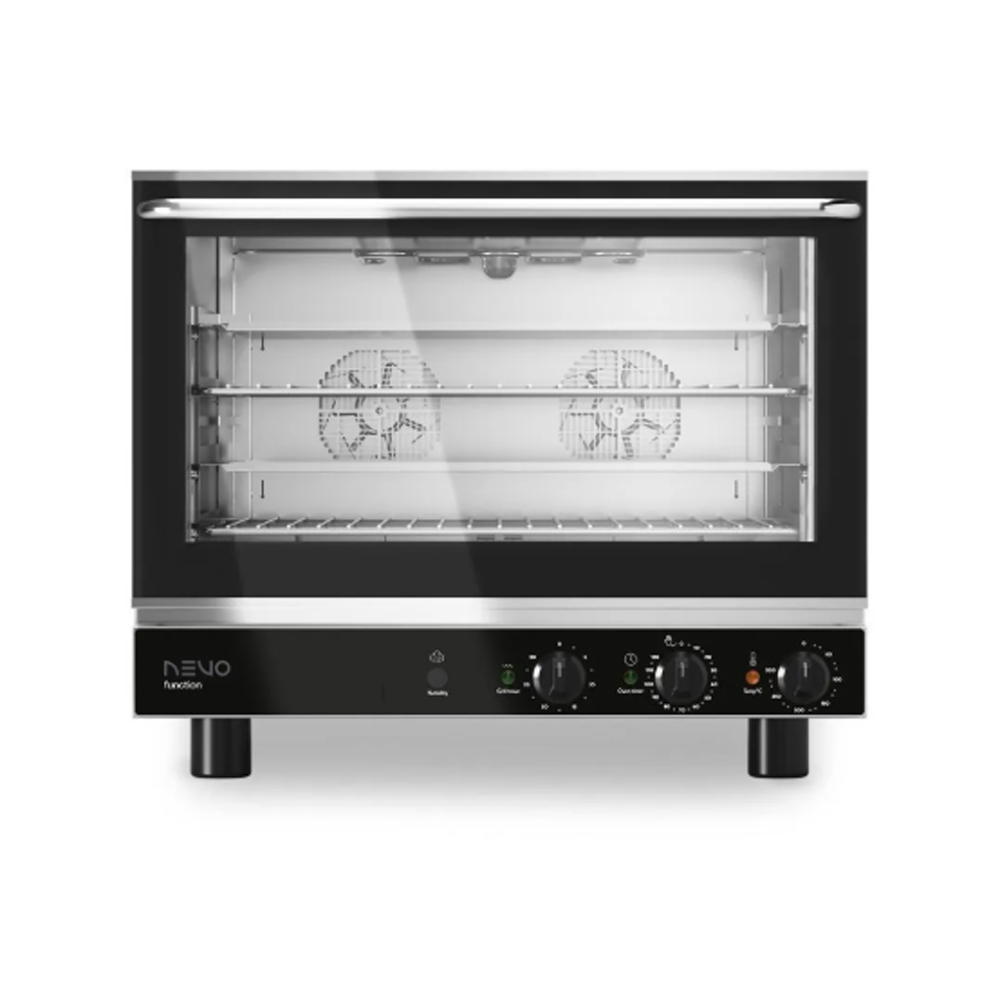 Φούρνος κυκλοθερμικός με υγρασία της σειράς Function. Με ηλεκτρομηχανικό χειρισμό και λειτουργία ψεκασμού στην θαλάμη για παραγωγή υγρασίας. Διαθέτει ανοξείδωτο βεντυλατέρ με αυτόματη αναστροφή, αφαιρούμενο λάστιχο στην πόρτα του φούρνου και διπλό τζάμι στην πόρτα. Έχει προστασία στην αποχέτευση του φούρνου και εσωτερικό φωτισμό στην θαλάμη. Υπάρχουν προαιρετικά εξαρτήματα όπου φούρνος από GN 1/1 να δεχθεί 600x400 mm λαμαρίνα. Συμπεριλαμβάνεται ένας δίσκος και μια λαμαρίνα. Μέγιστο ύψος λαμαρινών 70 ή 75 mm.