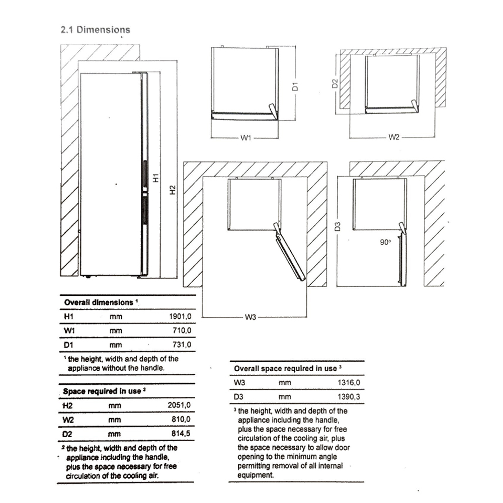 Διαστάσεις συσκευής (ΥxΠxΒ) - Βάθος με ανοιχτή πόρτα 190,2 x 71,0 x 76,0εκ.