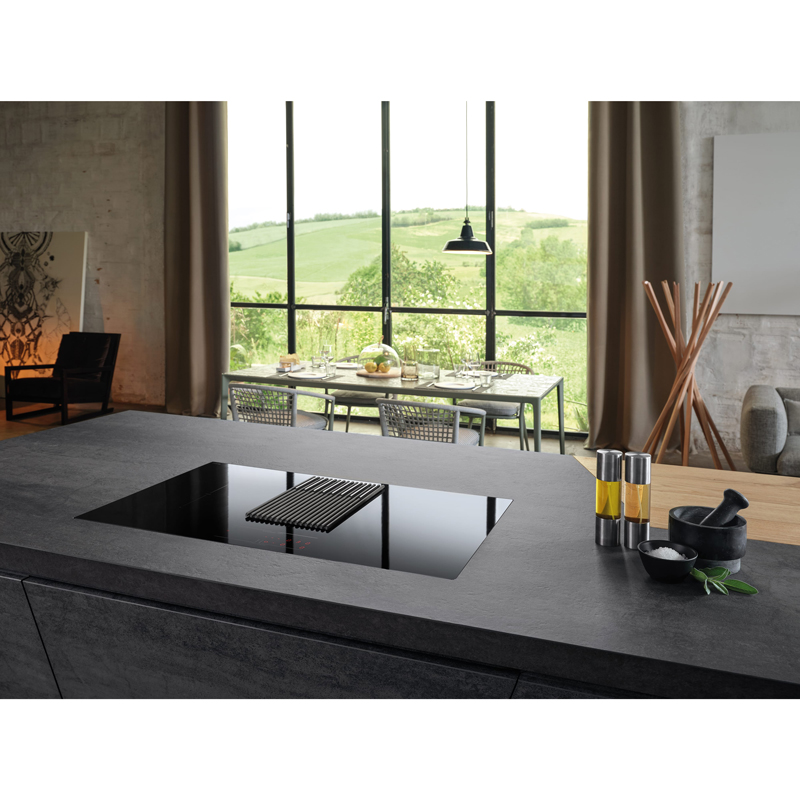 Το ενσωματωμένο σύστημα απορρόφησης καθαρίζει αυτόματα τον αέρα από καπνούς και δυσάρεστες οσμές, χάρη στο πολυλειτουργικό φίλτρο λίπους, οσμών και υγρασίας που εγγυάται μέγιστη απόδοση και εύκολη συντήρηση.