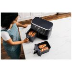 Μαγείρεψε 2 διαφορετικά φαγητά με 2 διαφορετικούς τρόπους ψησίματος, έτοιμα την ίδια στιγμή, χάρη στα δύο διαφορετικά καλάθια που διαθέτει. Τηγάνισμα αέρος στο ένα και ψήσιμο στο άλλο! Μην αγχώνεσαι για τους χρόνους ψησίματος, μιας και συγχρονίζονται ώστε να είναι έτοιμα την ίδια στιγμή και να τα απολαύσεις και τα δύο ζεστά! Μπορείς να ψήσεις ακόμα και 2kg κοτόπουλου σε κάθε κάδο, για να ετοιμάσεις μεγάλες μερίδες για όλους!