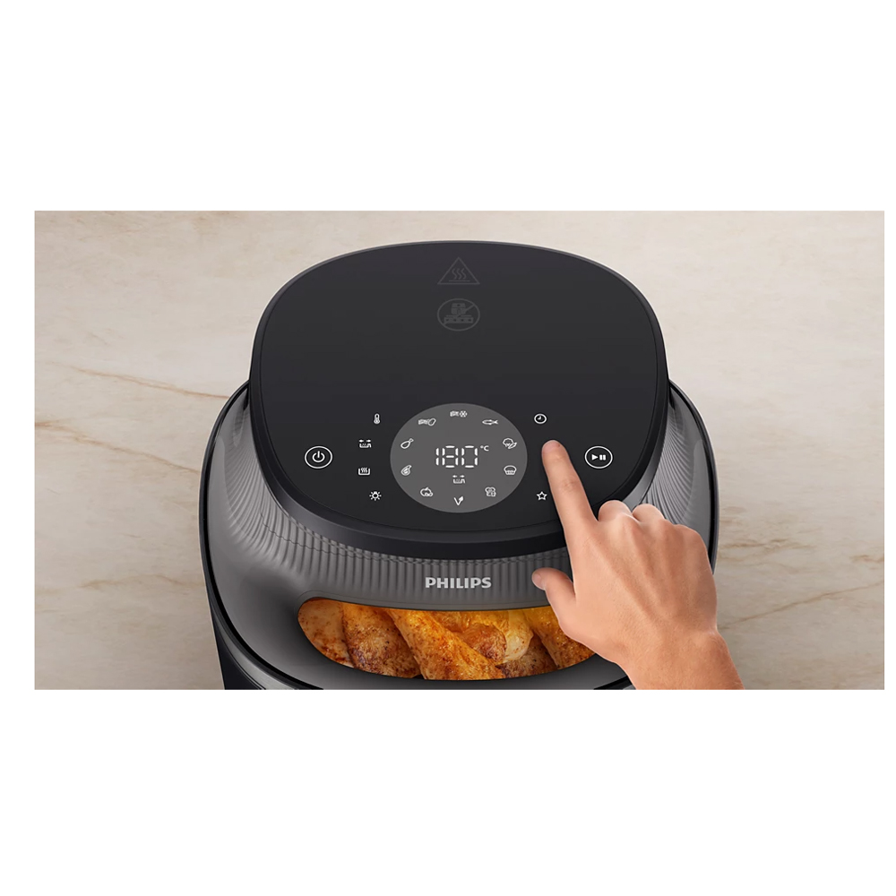 Εύκολη στη χρήση οθόνη αφής με 12 προεπιλογές: κατεψυγμένες πατάτες, φρέσκες πατάτες, κοπανάκια κοτόπουλου, κρέας, ψάρι, πρωινό, λαχανικά, μάφιν, βίγκαν, αφυδατωμένα φρούτα, διατήρηση θερμοκρασίας και ένα κουμπί αγαπημένης λειτουργίας όπου μπορείτε να αποθηκεύσετε τη δική σας προεπιλογή.