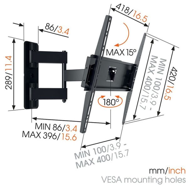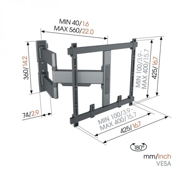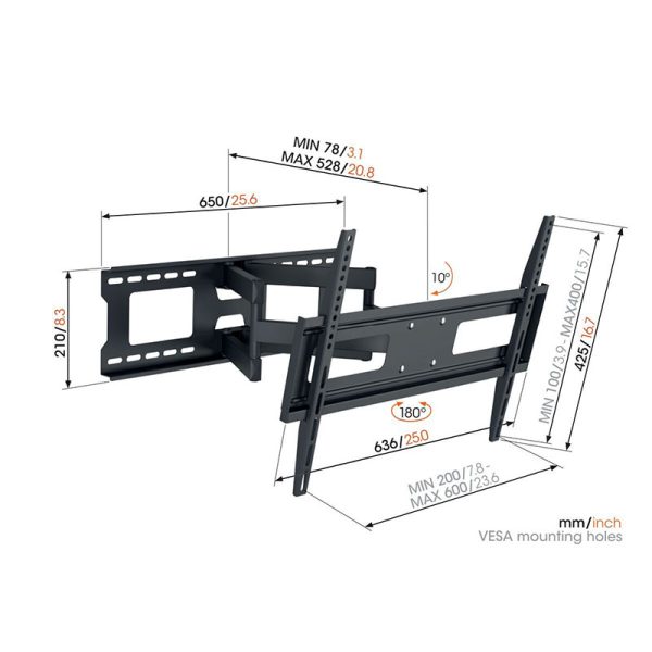 Είναι κατάλληλη για τηλεοράσεις από 32" έως 55" ίντσες, με max VESA 400 x 400 και μπορεί να στηρίξει τηλεοράσεις με μέγιστο βάρος 35Kg .