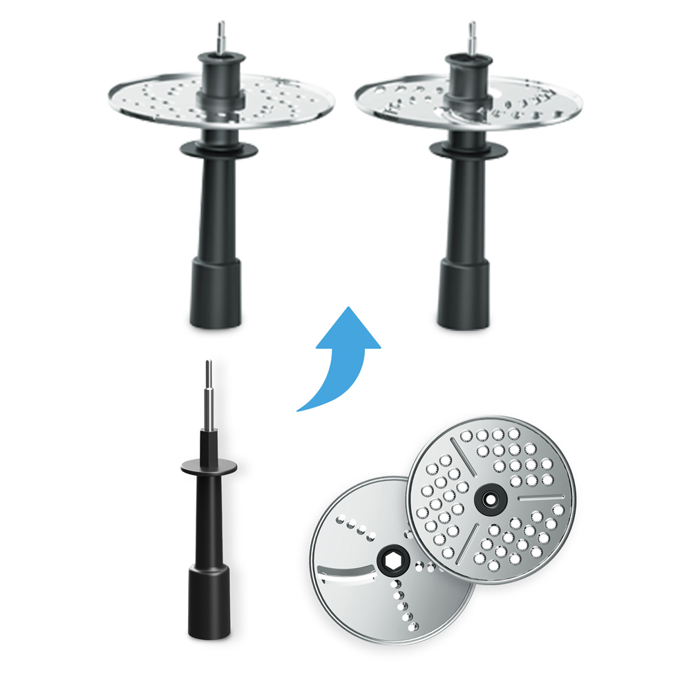 Αξεσουάρ: 6 λεπίδες με επικάλυψη τιτανίου σε σχήμα S, 4 πλαστικές λεπίδες για ζύμη, 1 ποτήρι to-go με ανεξάρτητες λεπίδες και καπάκι, 2 καπάκια, 2 δίσκοι τεμαχισμού