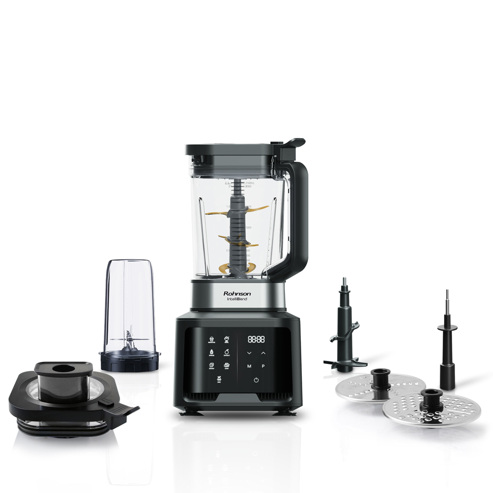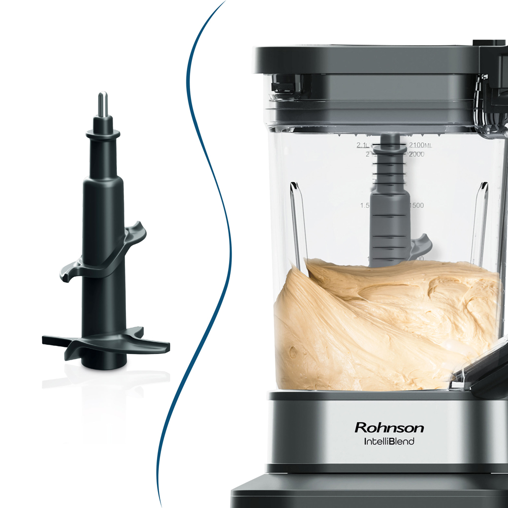 Το νέο Rohnson IntelliBlend R-5349 είναι η ιδανική 3 σε 1 συσκευή για τέλεια επεξεργασία πολλών διαφορετικών υλικών από φυλλώδη λαχανικά μέχρι σάλτσες και ζύμες με την δύναμη των 2000W. Διαθέτει 3 διαφορετικά εξαρτήματα επεξεργασίας: μεγάλη κανάτα blender 2,1L BPA free, to-go κύπελλο 600ml BPA free με καπάκι, 2 food processor δίσκους και ειδική τεχνολογία αναγνώρισης τους, με 7 διαφορετικές ρυθμίσεις που αναγνωρίζονται αυτόματα. Οι λεπίδες είναι κατάλληλες για πλύσιμο στο πλυντήριο πιάτων. Περιλαμβάνονται επίσης: εξαπλή λεπίδα με επικάλυψη τιτανίου, τετραπλή λεπίδα ζύμης, και 2 καπάκια ασφαλείας.