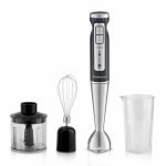 Ραβδομπλέντερ, της εταιρείας Rohnson, με ισχύ 1000 Watt. Με το ραβδομπλέντερ θα μπορέσετε να πολτοποιήσετε τρόφιμα για παιδικές τροφές, να ομογενοποιήσετε σάλτσες, να φτιάξετε σπιτική μαγιονέζα, να δημιουργήσετε smoothies από οποιοδήποτε φρούτο επιθυμείτε ή ακόμα και να ετοιμάσετε σούπες. Είναι πολύ πρακτικό, εύχρηστο και καταλαμβάνει λιγότερο χώρο, σε σχέση με ένα επιτραπέζιο μπλέντερ. Μεγάλο του πλεονέκτημα αποτελεί το γεγονός ότι μπορείτε να επεξεργάζεστε τα υλικά σας μέσα σε οποιοδήποτε σκεύος, χωρίς να χρειάζεται να τα μεταφέρετε και να συσσωρεύονται στην κουζίνα σας διαρκώς άπλυτα σκεύη. Κατά τη διάρκεια του μαγειρέματος καλό θα είναι να έχετε πάντα την κεφαλή βυθισμένη μέσα στα τρόφιμα που επεξεργάζεστε, ώστε να αποφεύγονται ανεπιθύμητα πιτσιλίσματα αλλά και τυχόν εγκαύματα, στην περίπτωση που το τρόφιμο που επεξεργάζεστε είναι ακόμα καυτό.