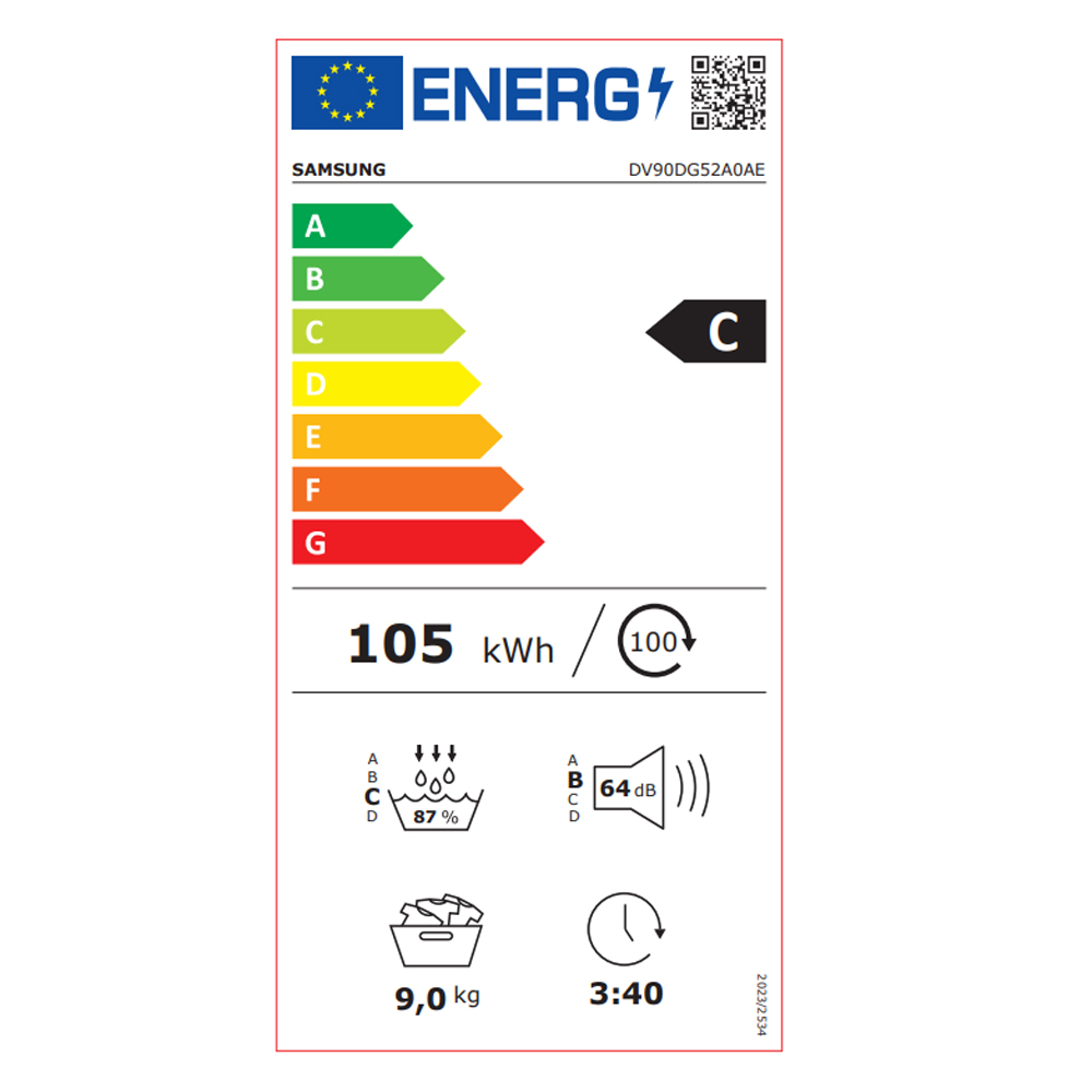 Τύπος στεγνωτηρίου Heatpump Κλάση Ενεργειακής Απόδοσης C