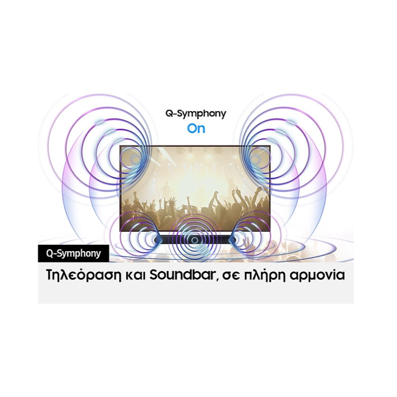 Η τεχνολογία Q-Symphony επιτρέπει τόσο στα ηχεία της τηλεόρασης όσο και στο Soundbar να παίζουν ταυτόχρονα σε πλήρη αρμονία, αναπαράγοντας ήχο βελτιστοποιημένο με τεχνητή νοημοσύνη.