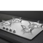 Εστίες αερίου ενός υλικού, εξ ολοκλήρου από ανοξείδωτο χάλυβα, όπου ο σχεδιασμός συναντά τη λειτουργικότητα. Η συνεχής αδιάλειπτη ανοξείδωτη επιφάνεια αντανακλά απαλά το φως ενισχύοντας τις γραμμές της, με τα διάσπαρτα στρογγυλεμένα φλόγιστρα και τις γεωμετρικές βάσεις σκευών, δημιουργώντας μεγάλες, σταθερές ζώνες μαγειρέματος για όλους τους τύπους μαγειρικών σκευών.